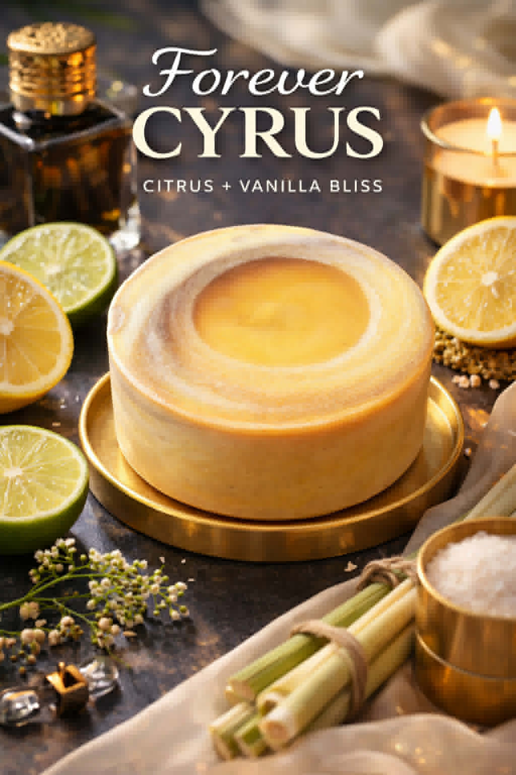 Scent Profile: Bright Citrus • Lemongrass • Lime • Litsea Cubeba • Tonka Bean • Warm Vanilla Forever Cyrus is for those who love a fresh start with a soft, lasting finish—where brightness meets warmth in the most luxurious way.